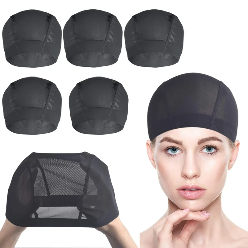 6 Pcs Wig Cap For Wig Making Elastic Dome Mesh Wig Cap Women's Front Lace Wig Black