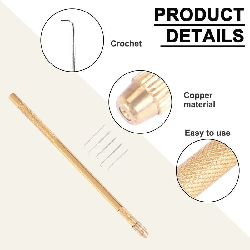 ACCESSORIES Wig Crochet 5Pcs Ventilating Needles +1 Brass Holder For Lace Wig Needle Hairpiece Knotting Hook Sets Beaded Hook