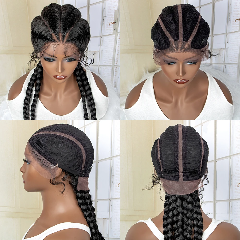 Braids SENSE 26 Inches Short Box Braids Lace Frontal Wig African Synthetic 4 Braid Wig with Baby Hair for Afro France Women Box Braid Wig