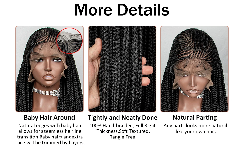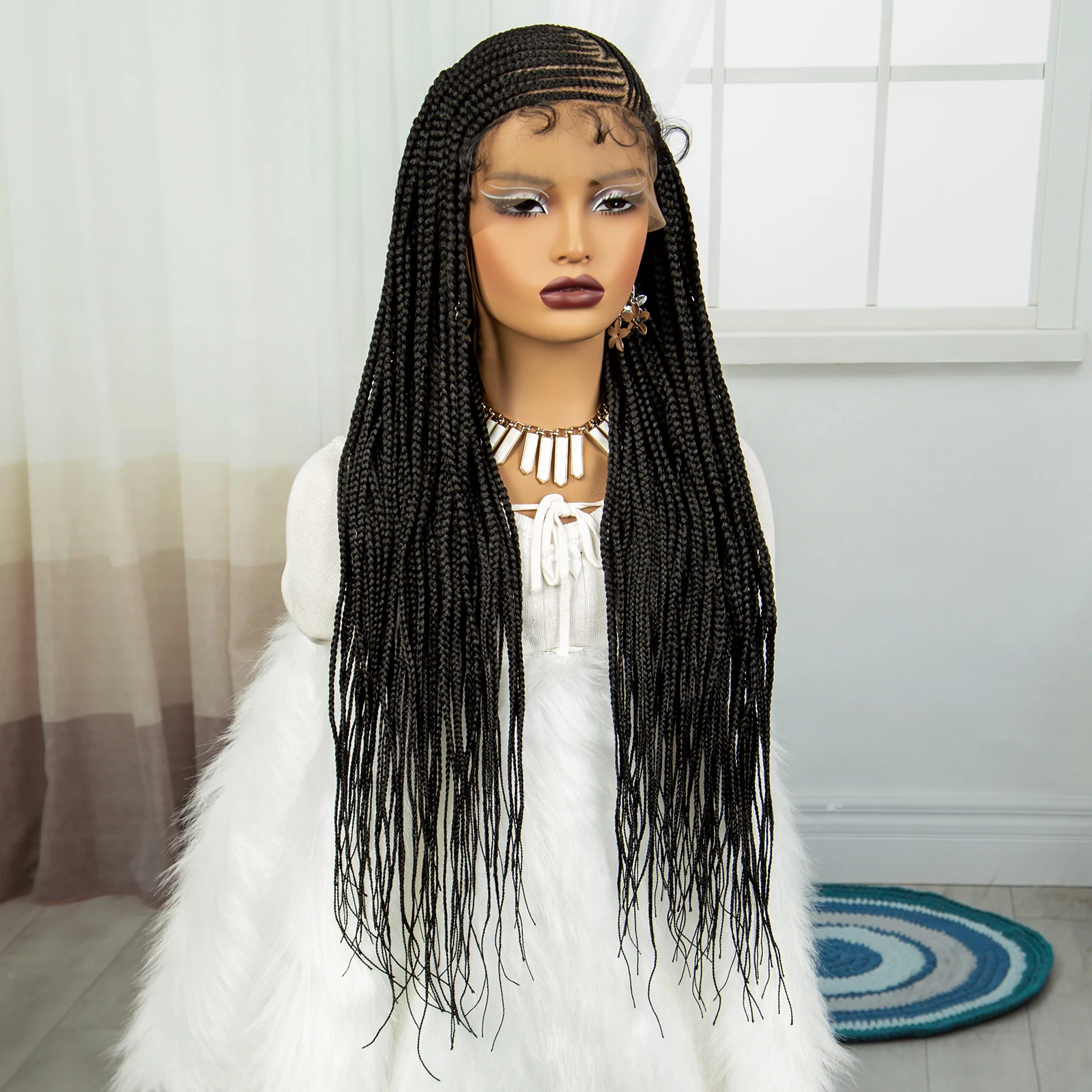 Braids SENSE 36 Inches Knotless Cornrow Braided Wigs Synthetic 13x6 Lace Front Braids Wig for Black Women Braiding Hair Wigs With Baby Hair