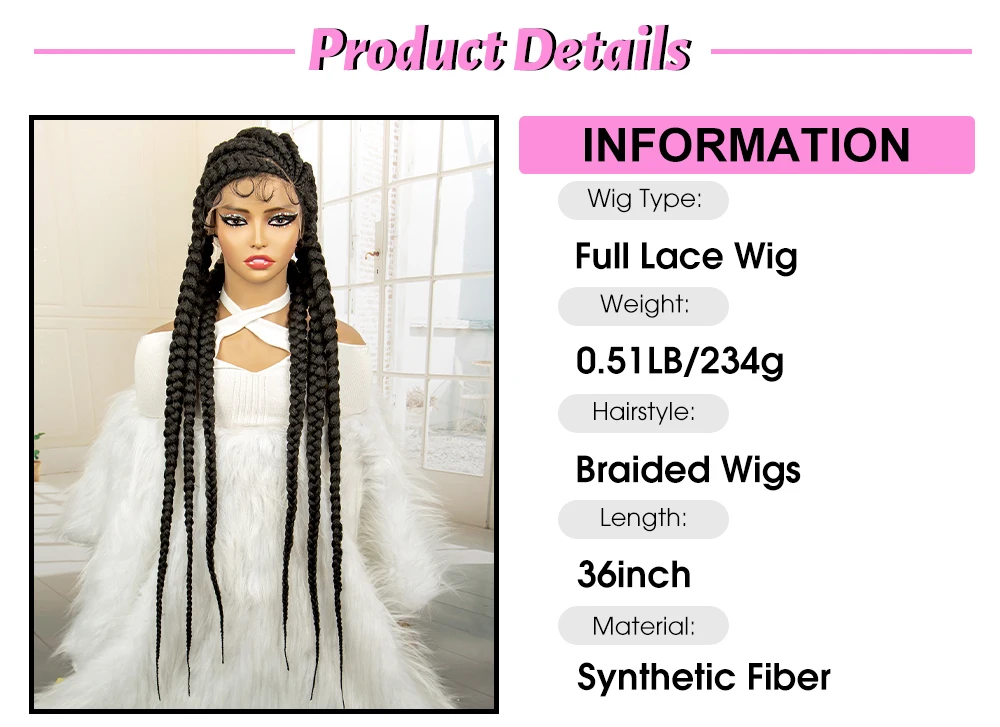 Braids SENSE 36 inches Synthetic Full Lace Wig for Black Women Braided Wig Lace Frontal Box Braids Wig Women Synthetic Braided