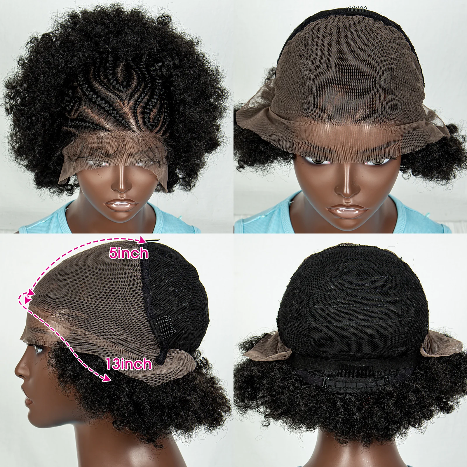 Braids SENSE Natural Afro Kinky Curly Braided Wigs Synthetic Transparent Lace Front Curly Braided Lace Wig With Baby Hair For Black Women