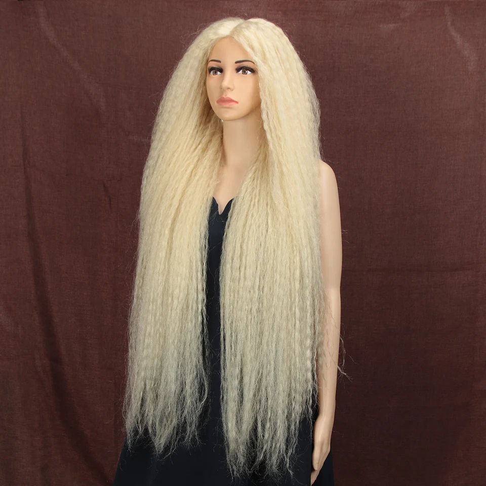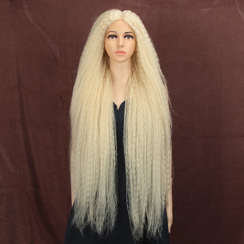 1.MAGIC 38"Inch Long Afro Kinky Straight Hair Weave Ombre Synthetic Lace Front Wigs For Black Women Heat Resistant Party Wigs