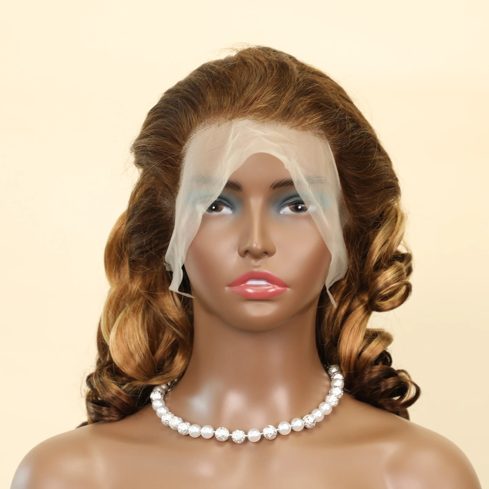 Lace wigs Winshair Romance Curl Remy Human Hair Wigs Brazilian 13x4 Lace Frontal Human Hair Wig T27/4 Colored Loose Curly Wavy Wig On Sale