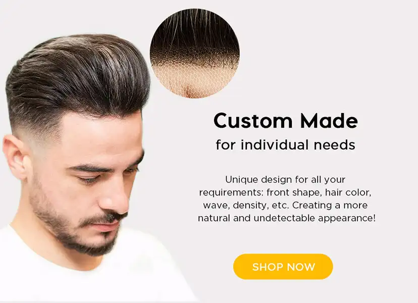 "Custom" means that your hair replacement system is suitable for your needs. The shape and size of your new unit will match your unique bald pattern. It will be color matched, cropped and styled to blend naturally with your own growing hair. There are two ways to help: 1. Send back a mold and a sample of your own hair (to match color and curl, etc.). Click this link to see how to make a mold. 2. Send back the old equipment you wear for reference. So we can make a perfect copy.