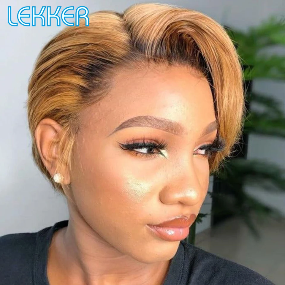Short SENSE Lekker Short Pixie Bob T Part Lace Front Human Hair Wigs For Women Brazilian Remy Hair Ombre Blonde 613 Glueless HD Lace Wigs