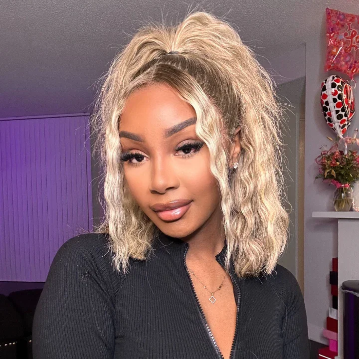Short SENSE Ombre Ash Blonde 180% Brazilian Straight Short Bob Wigs 13x4 Transparent Lace Frontal Wig Pre Plucked With Baby Hair