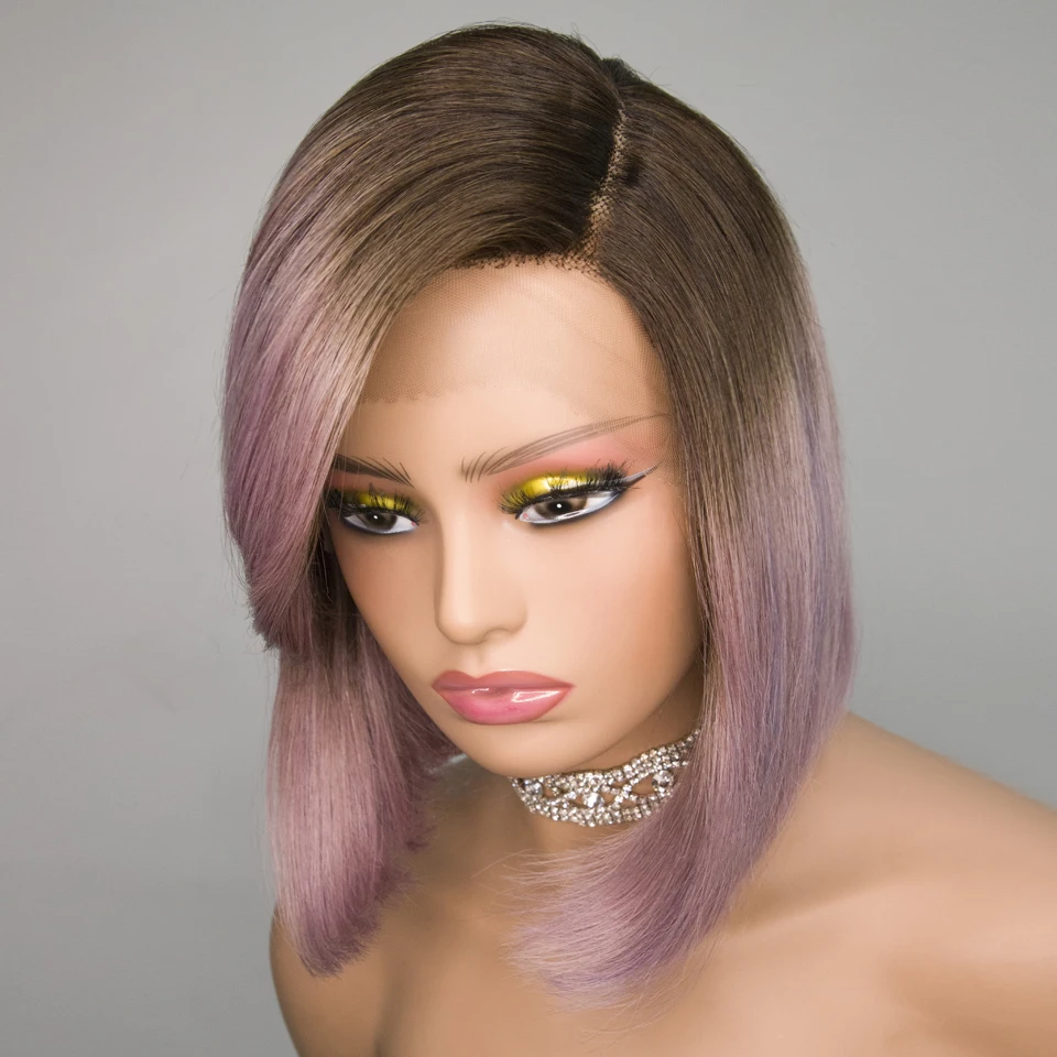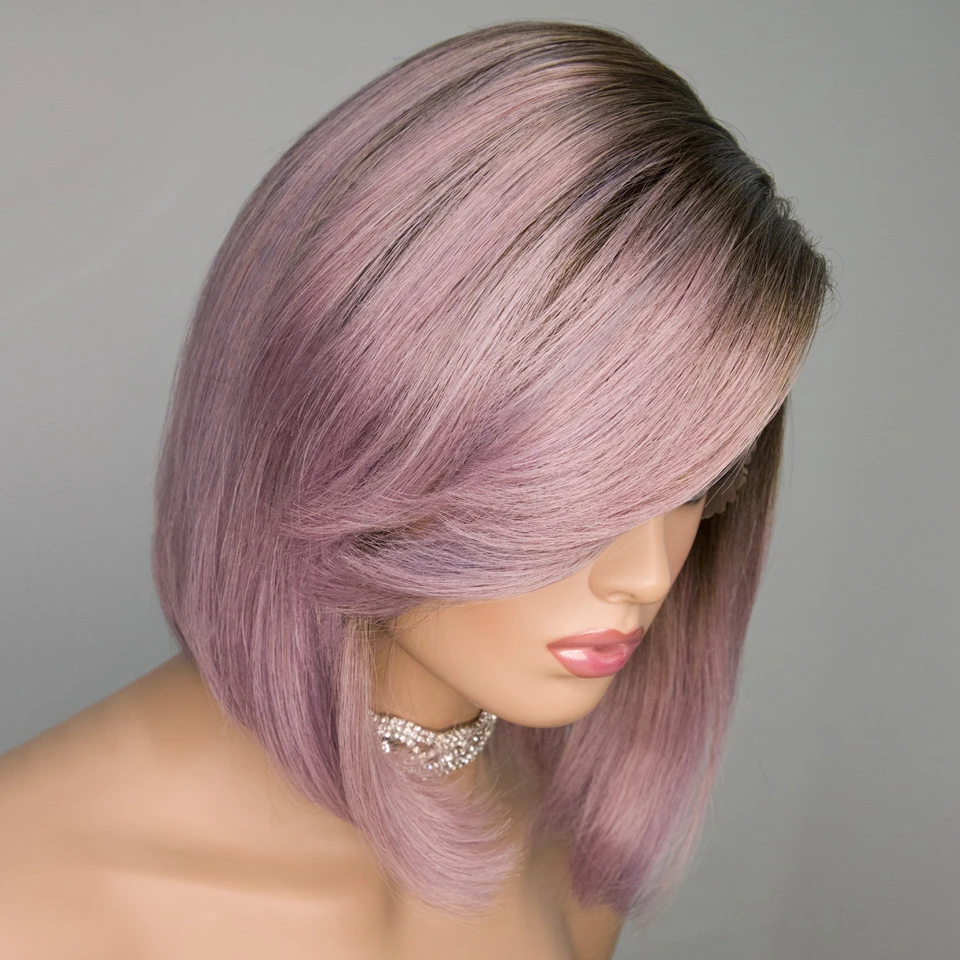 Short SENSE Purple Straight Bob Wig Brazilian Lace Part Human Hair Wigs For Women HD Highlight Wig Glueless Lace Front Wig With Bangs DEBUT